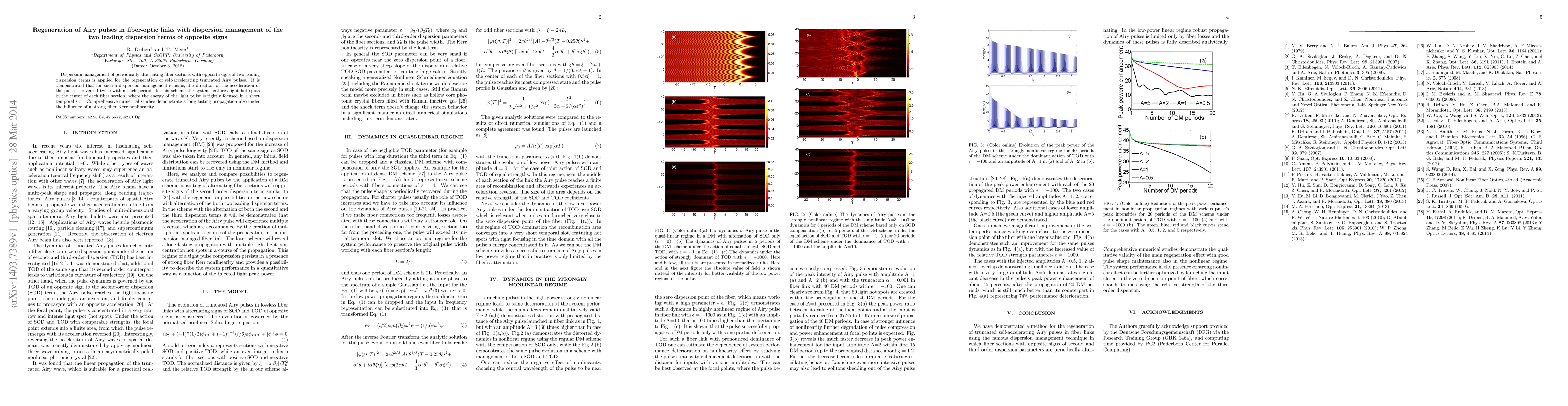 This paper explores the regeneration of self-accelerating Airy pulses in fiber-optic links using dispersion management with alternating fiber sections that reverse the pulse's acceleration direction twice per period, effectively maintaining long-distance propagation despite strong Kerr nonlinearity. Numerical studies confirm the technique's robustness.