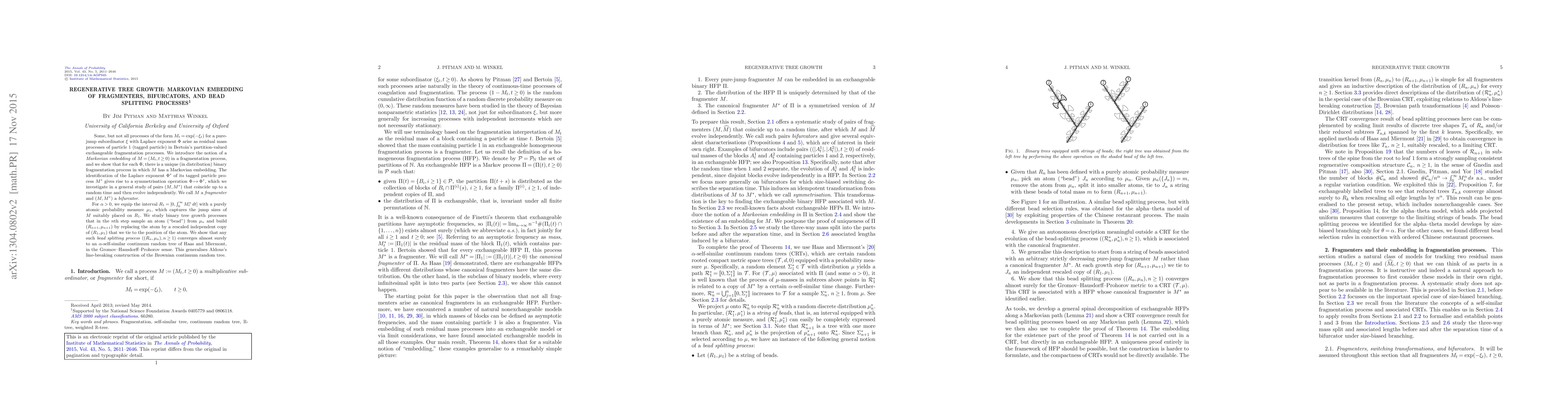 This paper explores the Markovian embedding of processes in fragmentation models, identifying a unique binary fragmentation process for each Laplace exponent. It introduces the concept of a bifurcator, consisting of a fragmenter and its symmetrized counterpart, and studies bead splitting processes that converge to an α-self-similar continuum random tree, generalizing Aldous's construction of the Brownian continuum random tree.