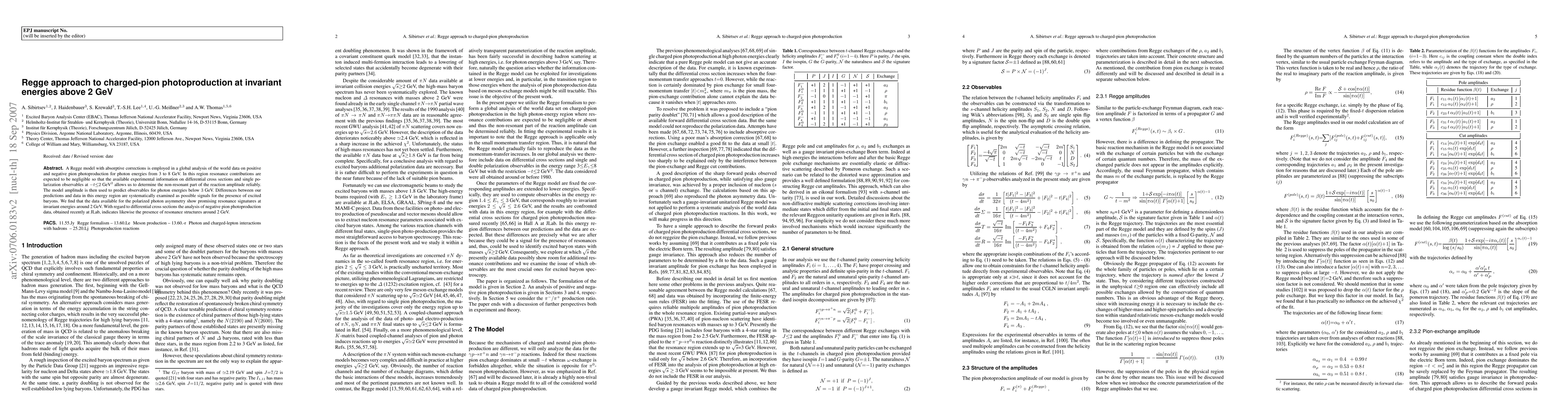 This paper uses a Regge model with absorptive corrections to analyze charged-pion photoproduction data for photon energies from 3 to 8 GeV, finding negligible resonance contributions. The model predicts observables for lower energies, revealing potential excited baryon resonances indicated by discrepancies in polarized photon asymmetry data around 2 GeV.
