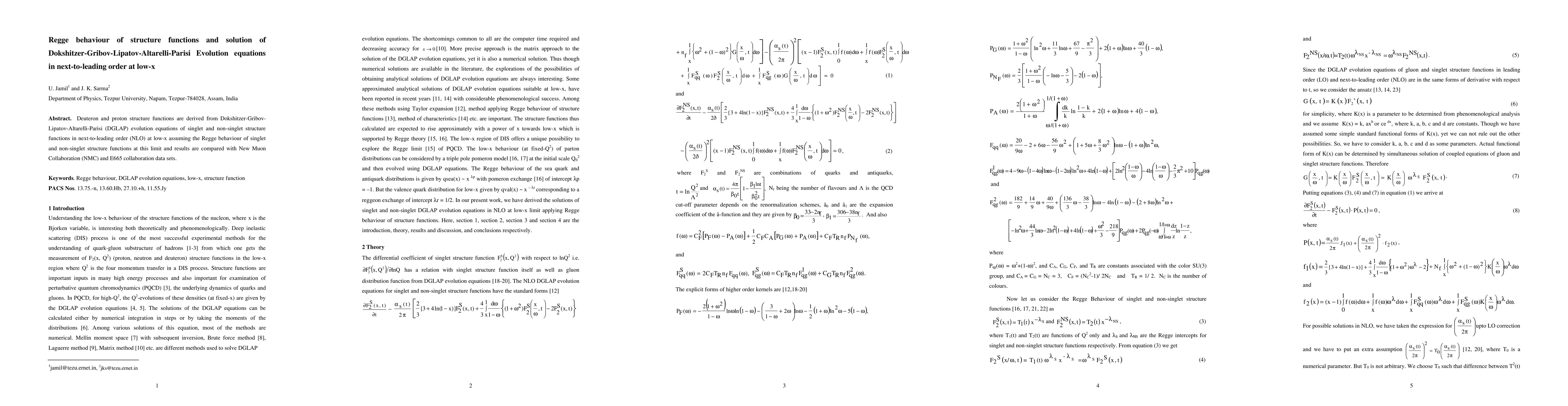 This paper derives deuteron and proton structure functions using DGLAP evolution equations at next-to-leading order (NLO) at low-x, assuming Regge behavior, and compares results with NMC and E665 experimental data. The study aims to validate the theoretical approach against empirical measurements.