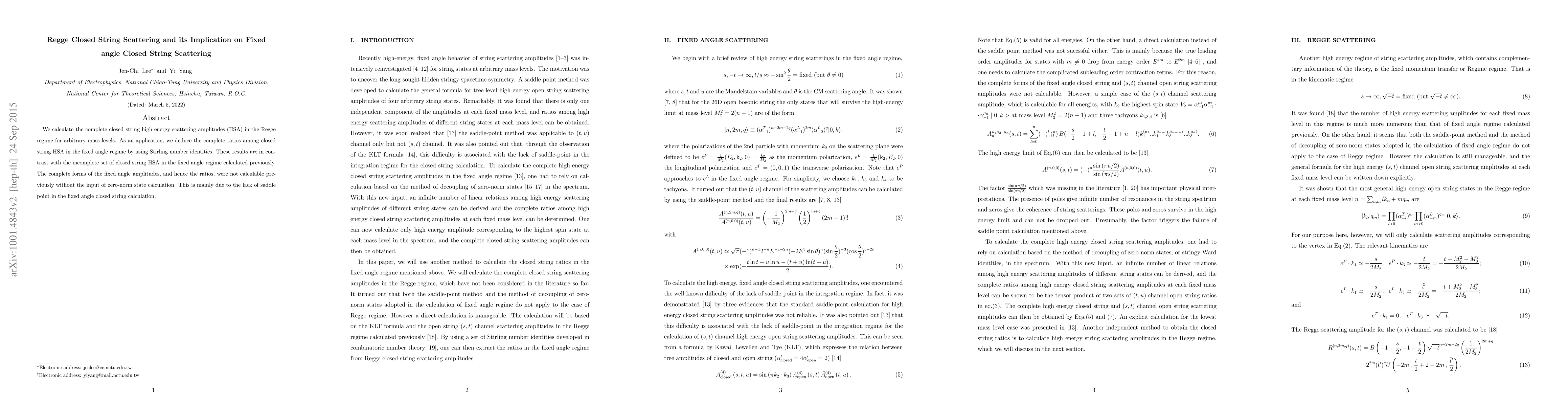 This paper calculates complete high energy scattering amplitudes for closed strings in the Regge regime, providing new ratios among these amplitudes in the fixed angle regime using Stirling number identities. These results, previously unattainable, contrast with earlier incomplete calculations and resolve issues related to the lack of a saddle point in fixed angle closed string calculations.