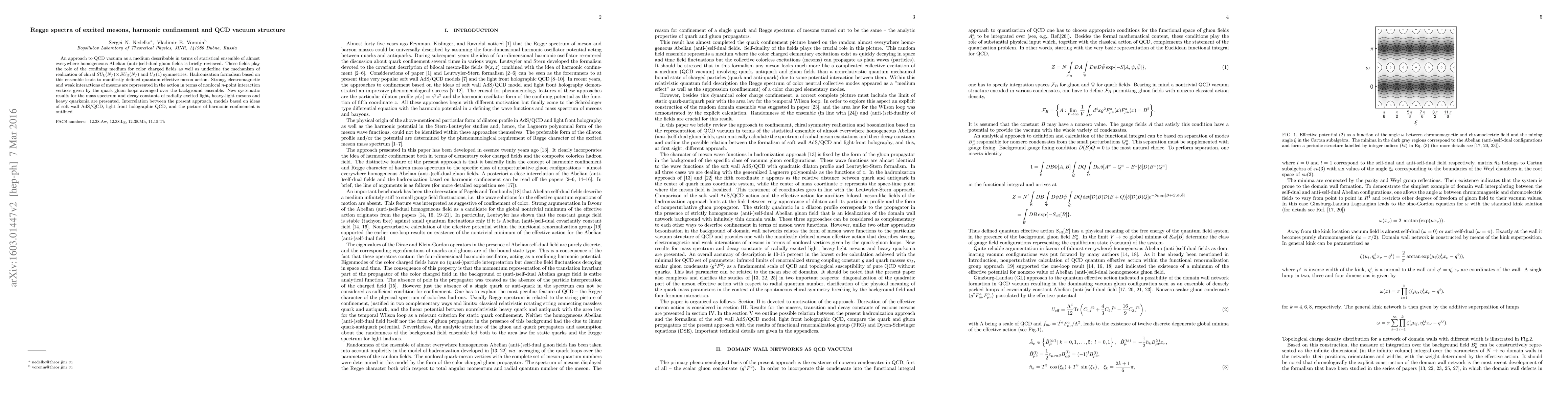 This paper explores the QCD vacuum as a statistical ensemble of homogeneous Abelian (anti-)self-dual gluon fields, which serve as a confining medium for color-charged fields and realize chiral symmetries. It presents new results for the mass spectrum and decay constants of excited mesons, linking these findings to models like soft wall AdS/QCD and harmonic confinement.