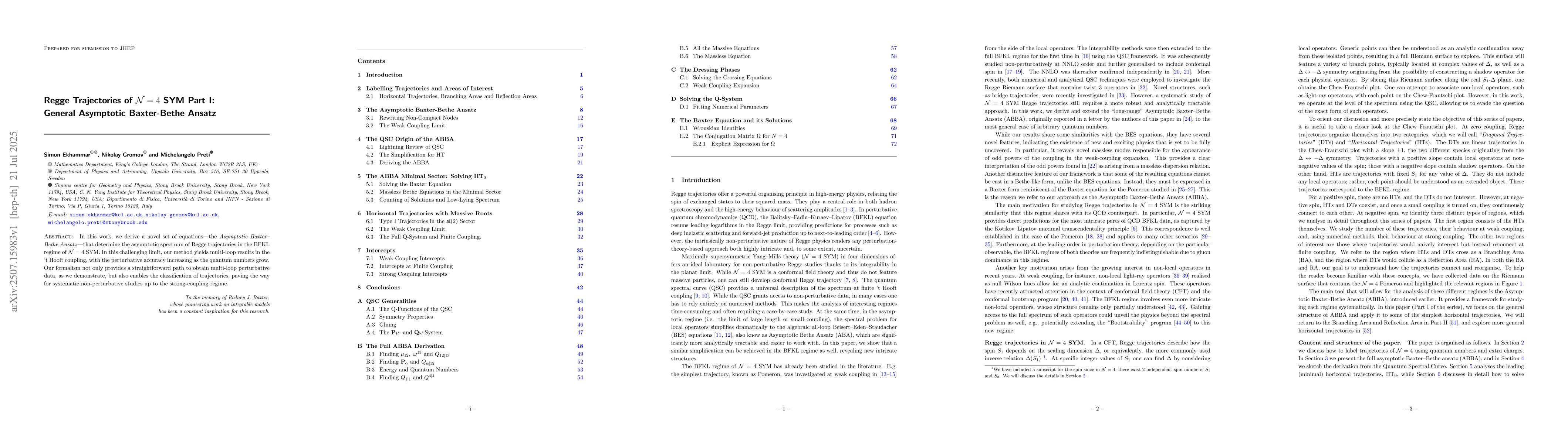 The significance of this work lies in its contribution to understanding Regge trajectories in N=4 SYM, a theory central to the AdS/CFT correspondence. The ABBA equations provide a powerful tool for non-perturbative studies, classifying trajectories and finding starting points for numerical investigations, which is crucial for exploring a large number of trajectories.