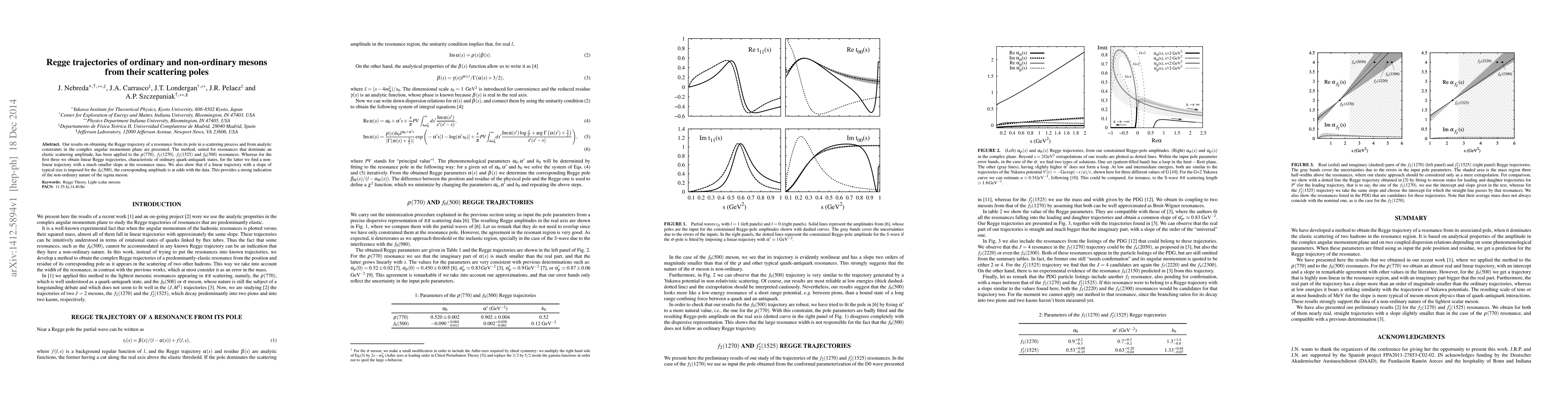 Our results on obtaining the Regge trajectory of a resonance from its pole in a scattering process and from analytic constraints in the complex angular momentum plane are presented. The method, suited for resonances that dominate an elastic scattering amplitude, has been applied to the $\rho(770)$, $f_2(1270)$, $f_2'(1525)$ and $f_0(500)$ resonances. Whereas for the first three we obtain linear Regge trajectories, characteristic of ordinary quark-antiquark states, for the latter we find a non-linear trajectory with a much smaller slope at the resonance mass. We also show that if a linear trajectory with a slope of typical size is imposed for the $f_0(500)$, the corresponding amplitude is at odds with the data. This provides a strong indication of the non-ordinary nature of the sigma meson.