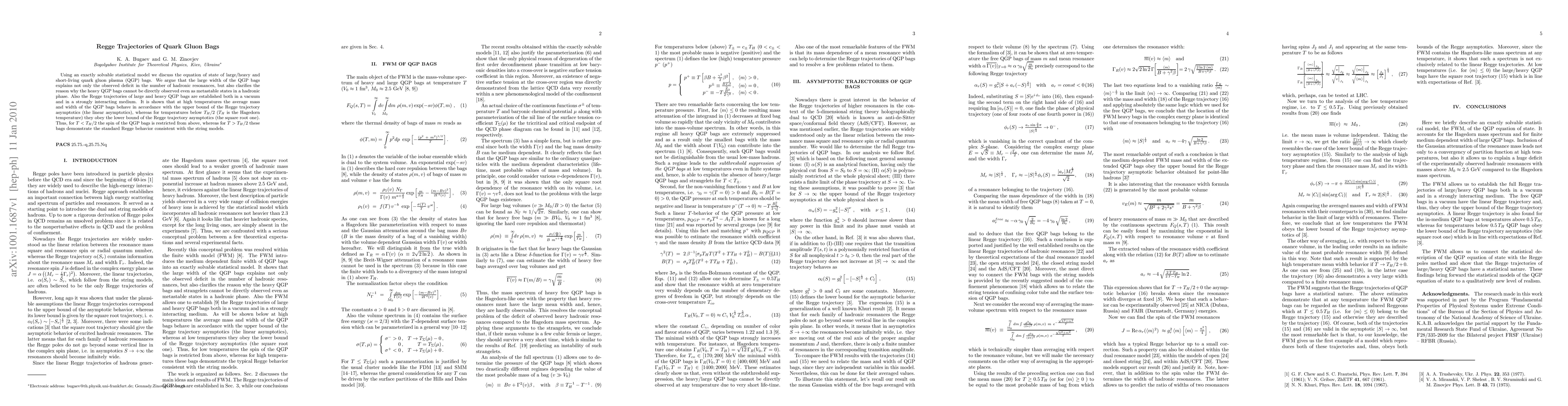 This paper explores the equation of state for quark gluon plasma bags using a solvable statistical model, showing that their large width explains the deficit in hadronic resonances and their unobservability. It establishes Regge trajectories for these bags, revealing different behaviors above and below the Hagedorn temperature.