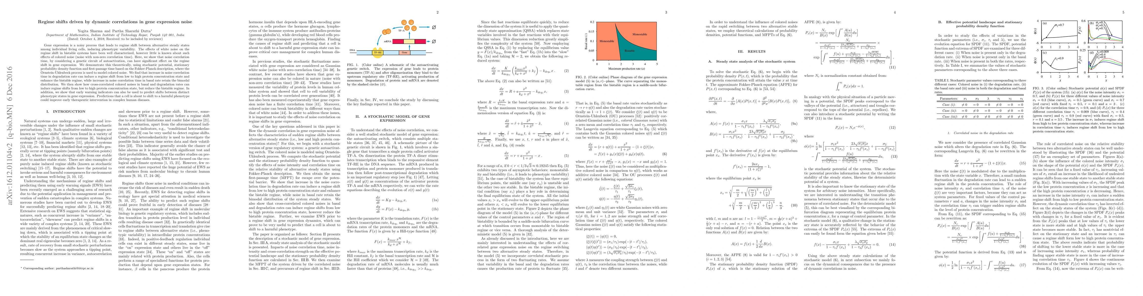 This paper investigates how colored noise, characterized by non-zero correlation time, affects regime shifts in gene expression, demonstrating that increased noise correlation in degradation rates can induce shifts to higher protein concentrations, while cross-correlated noise can induce shifts but reduce bistability. Early warning indicators are proposed for predicting phenotypic state shifts, potentially aiding in therapeutic interventions for diseases.