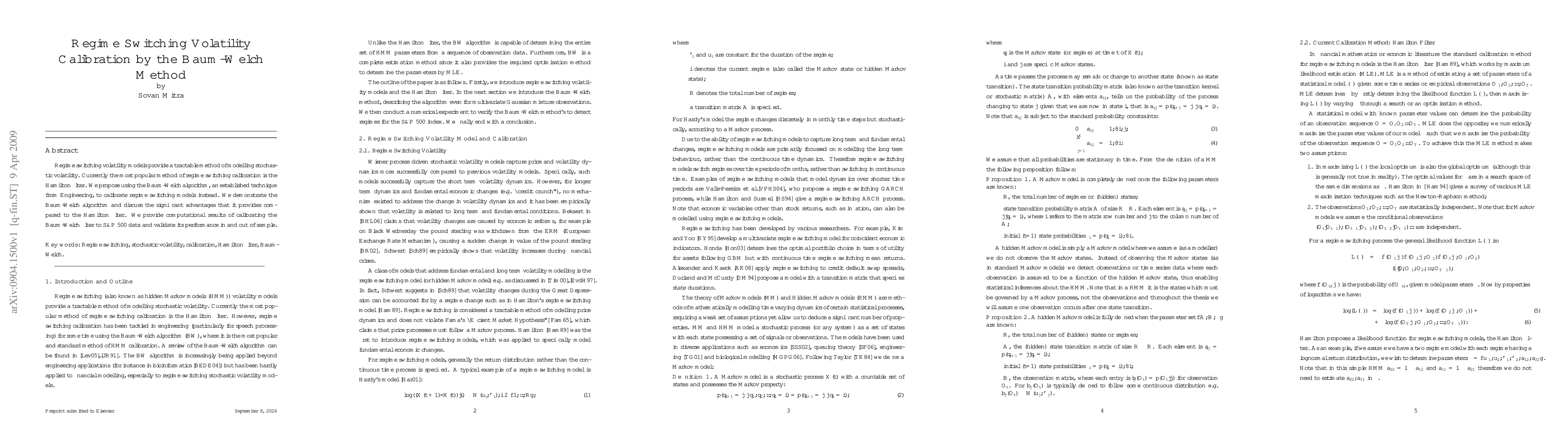 This paper proposes using the Baum-Welch algorithm to calibrate regime switching volatility models, offering advantages over the Hamilton filter. The authors demonstrate the method's effectiveness through computational results on S&P 500 data, showing improved performance both in and out of sample.