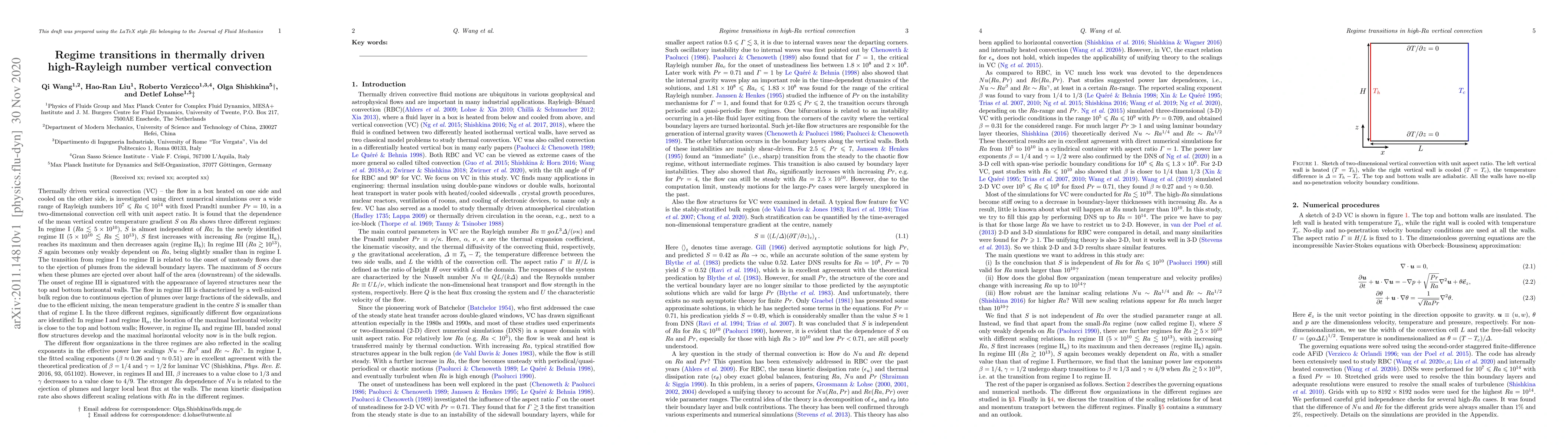 Researchers investigated vertical convection in a two-dimensional cell over a wide range of Rayleigh numbers, finding three distinct regimes with different temperature gradient dependencies and flow organizations, impacting heat transfer and fluid dynamics.
