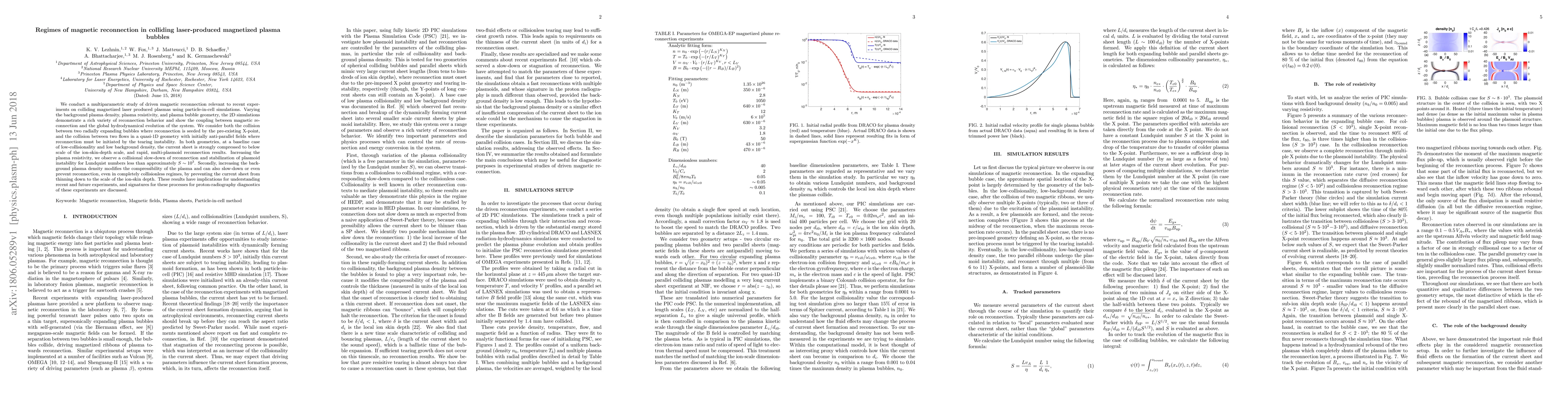This study uses particle-in-cell simulations to explore magnetic reconnection in colliding laser-produced magnetized plasma bubbles, revealing diverse reconnection behaviors influenced by plasma density, resistivity, and geometry. The research highlights the interplay between magnetic reconnection and hydrodynamic evolution, with implications for interpreting experimental results and diagnostics.