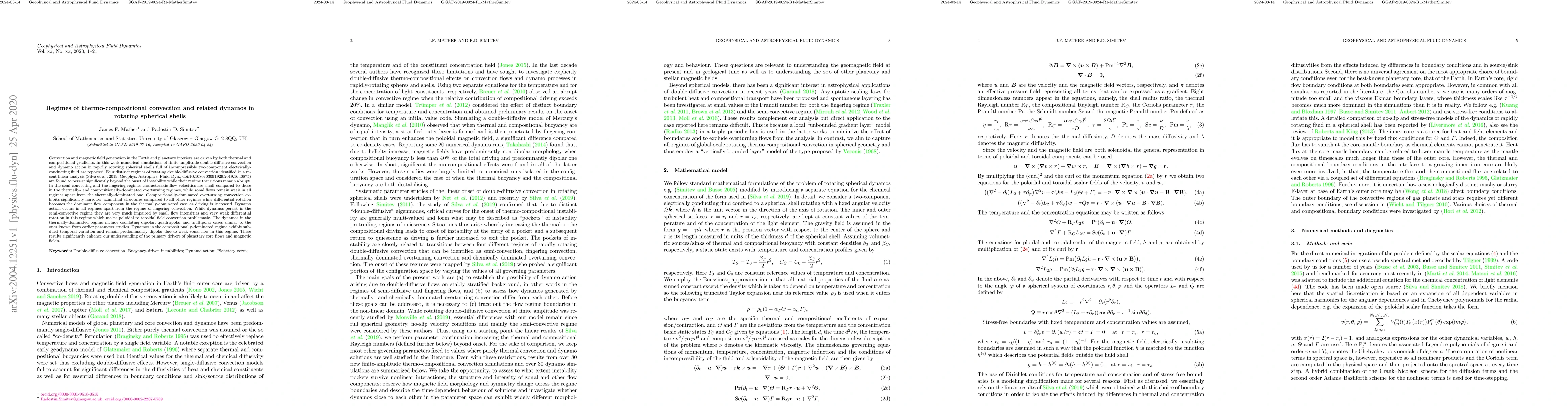 This paper investigates regimes of double-diffusive convection and dynamo action in rotating spherical shells, identifying four distinct regimes with varying flow velocities and dynamo behaviors. The study reveals that dynamos are present in all regimes except fingering, with significant differences in flow structures and magnetic field dynamics across regimes.