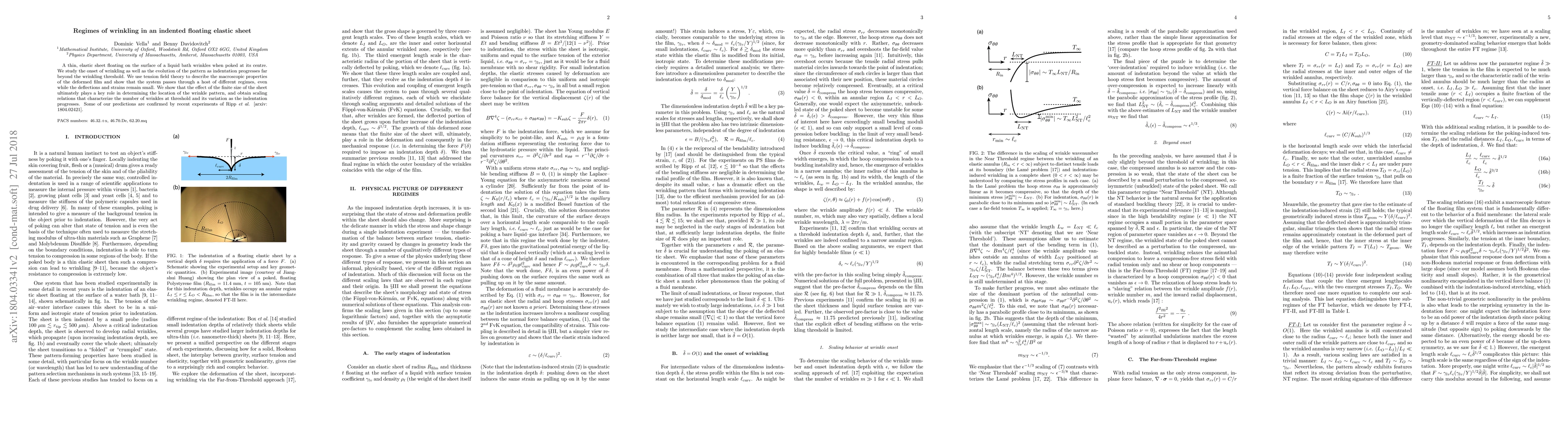 This paper investigates the wrinkling behavior of a floating elastic sheet under central indentation, detailing various wrinkling regimes using tension field theory. The study reveals the influence of the sheet's finite size on wrinkle pattern formation and provides scaling relations for wrinkle count, corroborated by experimental results.