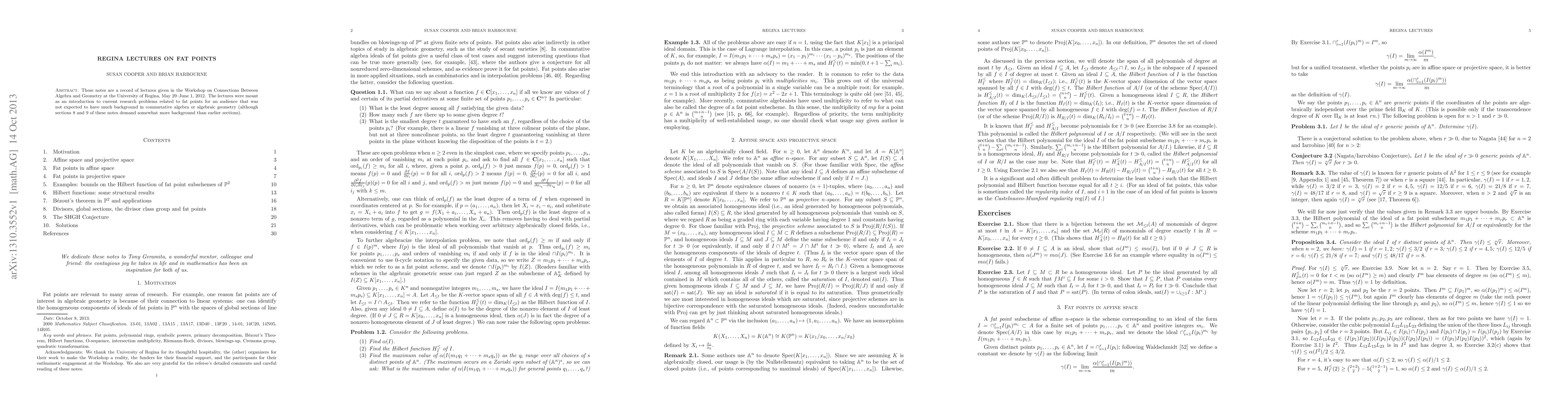 These notes are a record of lectures given in the Workshop on Connections Between Algebra and Geometry at the University of Regina, May 29--June 1, 2012. The lectures were meant as an introduction to current research problems related to fat points for an audience that was not expected to have much background in commutative algebra or algebraic geometry (although sections 8 and 9 of these notes demand somewhat more background than earlier sections).
