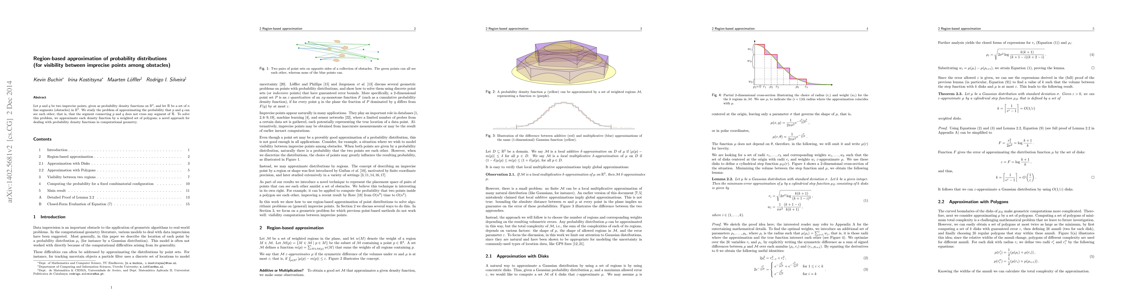 Let $p$ and $q$ be two imprecise points, given as probability density functions on $\mathbb R^2$, and let $\cal R$ be a set of $n$ line segments (obstacles) in $\mathbb R^2$. We study the problem of approximating the probability that $p$ and $q$ can see each other; that is, that the segment connecting $p$ and $q$ does not cross any segment of $\cal R$. To solve this problem, we approximate each density function by a weighted set of polygons; a novel approach to dealing with probability density functions in computational geometry.