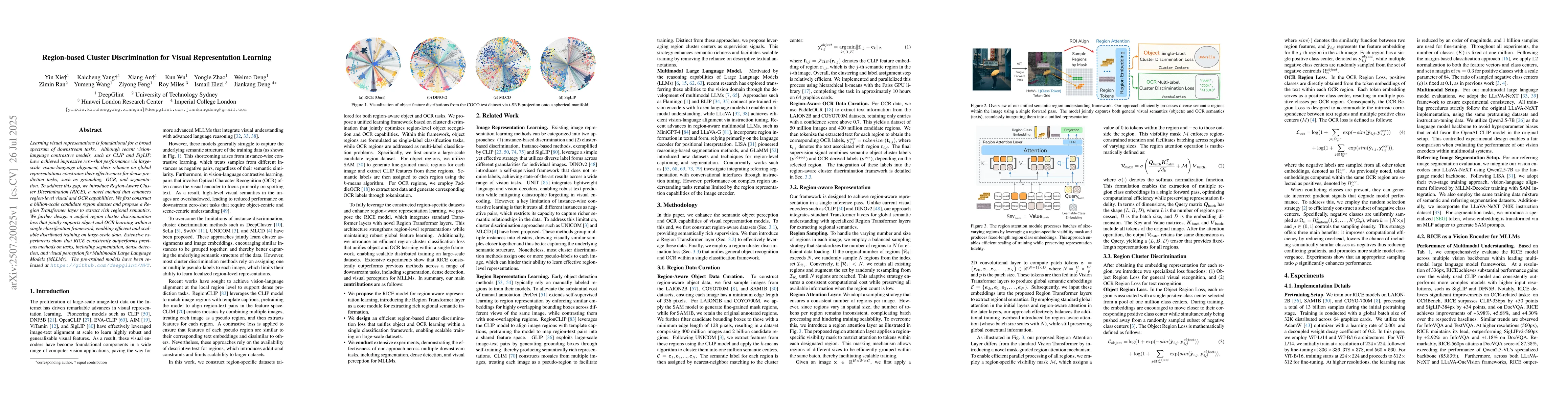 Learning visual representations is foundational for a broad spectrum of downstream tasks. Although recent vision-language contrastive models, such as CLIP and SigLIP, have achieved impressive zero-shot performance via large-scale vision-language alignment, their reliance on global representations constrains their effectiveness for dense prediction tasks, such as grounding, OCR, and segmentation. To address this gap, we introduce Region-Aware Cluster Discrimination (RICE), a novel method that enhances region-level visual and OCR capabilities. We first construct a billion-scale candidate region dataset and propose a Region Transformer layer to extract rich regional semantics. We further design a unified region cluster discrimination loss that jointly supports object and OCR learning within a single classification framework, enabling efficient and scalable distributed training on large-scale data. Extensive experiments show that RICE consistently outperforms previous methods on tasks, including segmentation, dense detection, and visual perception for Multimodal Large Language Models (MLLMs). The pre-trained models have been released at https://github.com/deepglint/MVT.