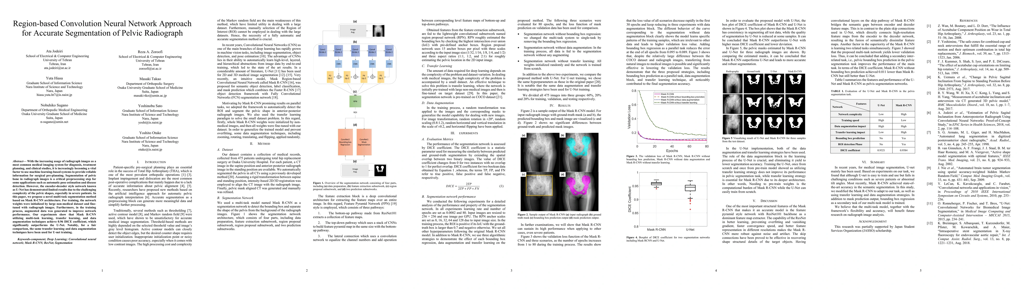 This paper proposes a Mask R-CNN-based approach for accurate pelvic bone segmentation in radiographs, outperforming traditional U-Net methods. The multi-task learning, transfer learning from non-medical datasets, and data augmentation techniques significantly improve segmentation performance, achieving a DICE coefficient of 0.96.