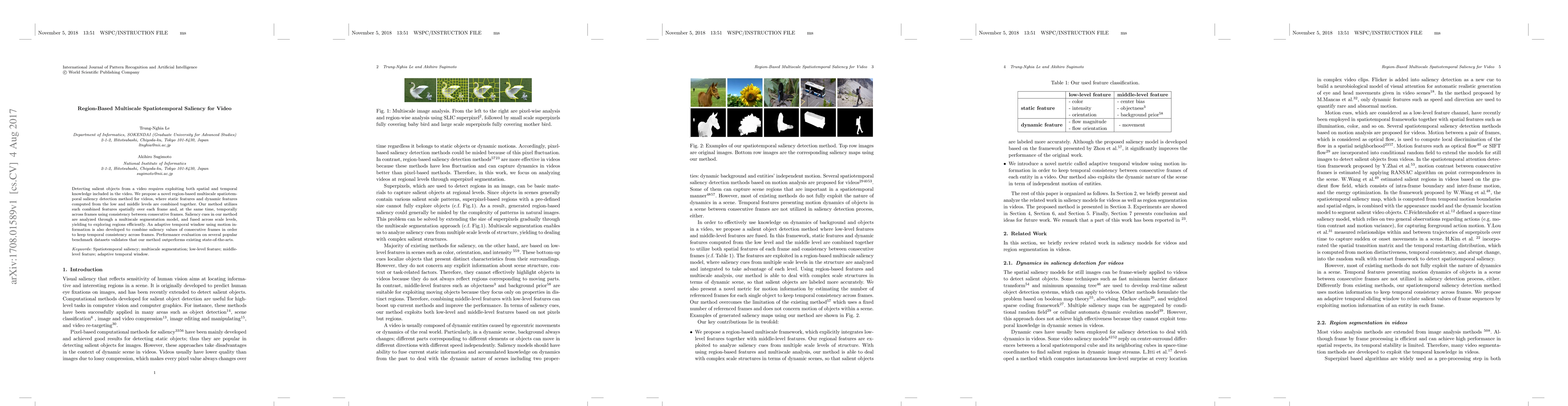 The paper proposes a region-based multiscale spatiotemporal saliency detection method for videos, combining static and dynamic features from low and middle levels. It uses multiscale segmentation for saliency cues and temporal consistency across frames via an adaptive temporal window based on motion information.