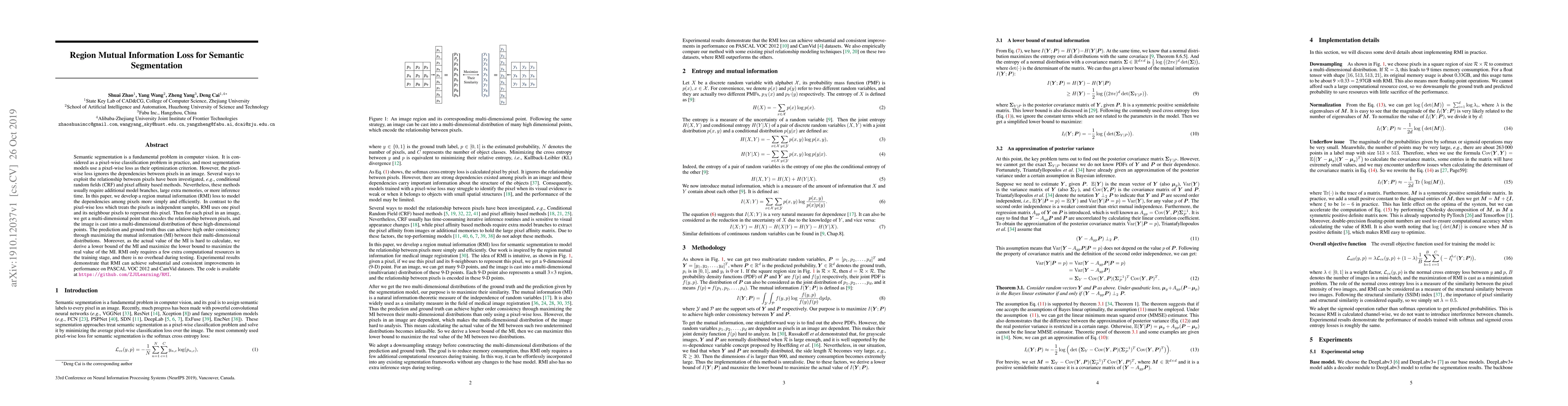 Researchers introduce a new loss function called Region Mutual Information Loss (RMI) that models pixel dependencies more efficiently than existing methods, achieving consistent improvements in performance on semantic segmentation tasks.