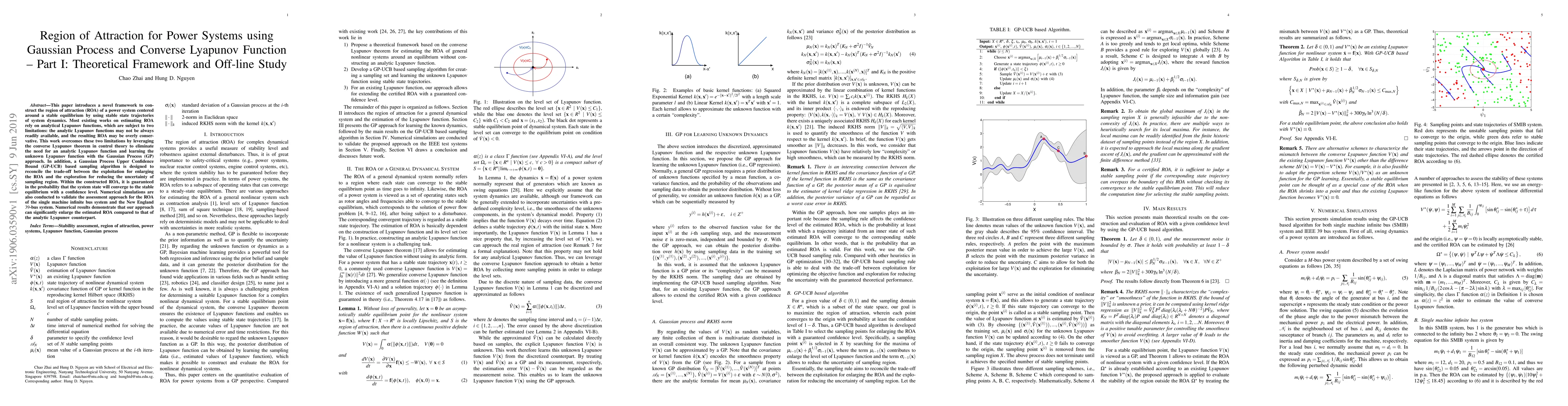 This paper proposes a novel framework to determine the region of attraction (ROA) for power systems using Gaussian Processes and the converse Lyapunov theorem, eliminating the need for analytic Lyapunov functions and providing a less conservative estimate. The method employs a Gaussian Process Upper Confidence Bound (GP-UCB) sampling algorithm to balance exploration and exploitation, and numerical simulations show it significantly enlarges the estimated ROA compared to traditional methods.
