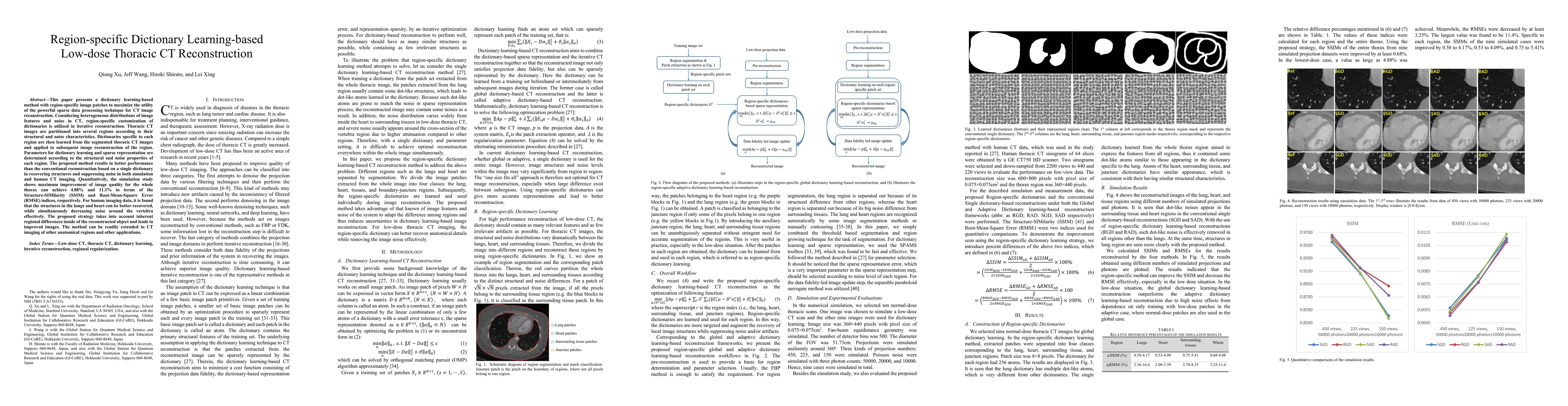 This paper proposes a dictionary learning-based method to reconstruct low-dose thoracic CT images with improved structure recovery and noise suppression, achieved through region-specific customization of dictionaries.