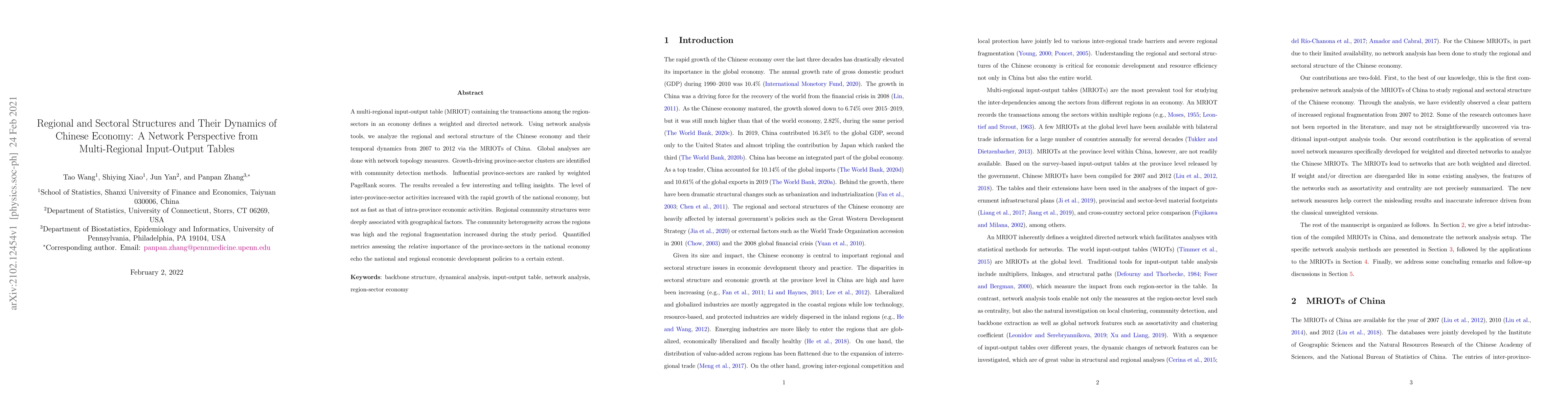 This paper uses multi-regional input-output tables and network analysis to explore the regional and sectoral dynamics of China's economy from 2007 to 2012, revealing increased inter-province-sector activities and high regional fragmentation, with community structures influenced by geographical factors. The study identifies growth-driving clusters and influential sectors, aligning with national and regional economic policies.