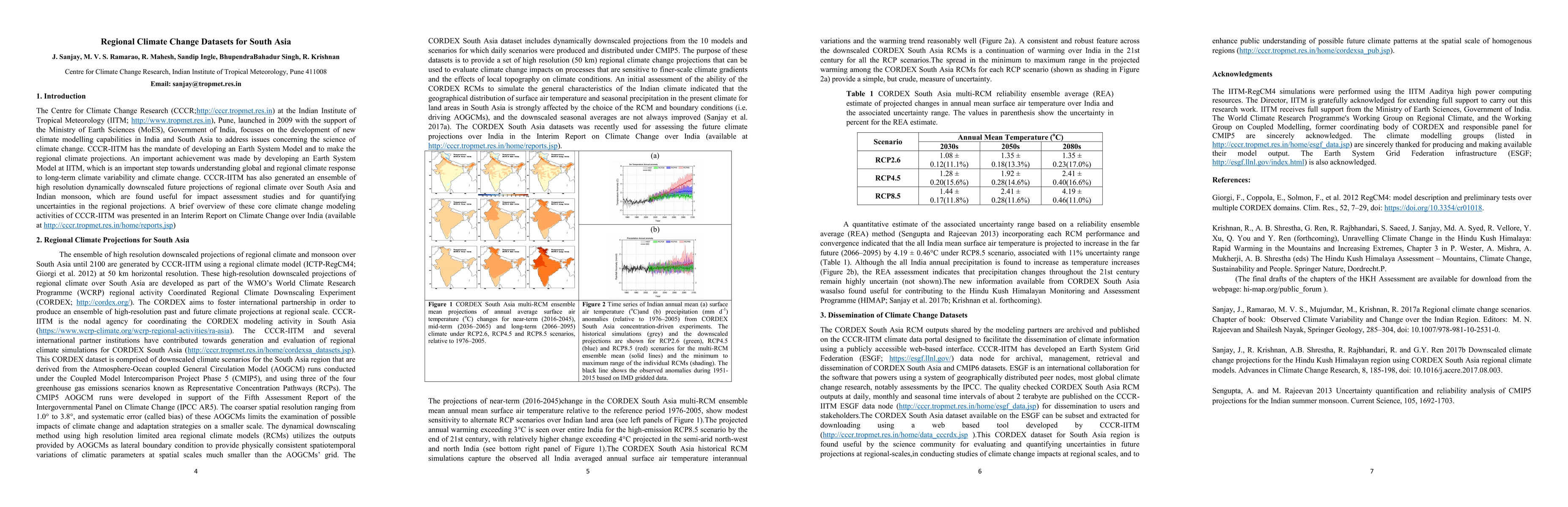 The Centre for Climate Change Research (CCCR) at the Indian Institute of Tropical Meteorology (IITM) has developed an Earth System Model and generated high-resolution regional climate projections for South Asia, aiding in impact assessment studies and uncertainty quantification. These efforts are part of CCCR-IITM's mandate to advance climate modelling in India and South Asia.