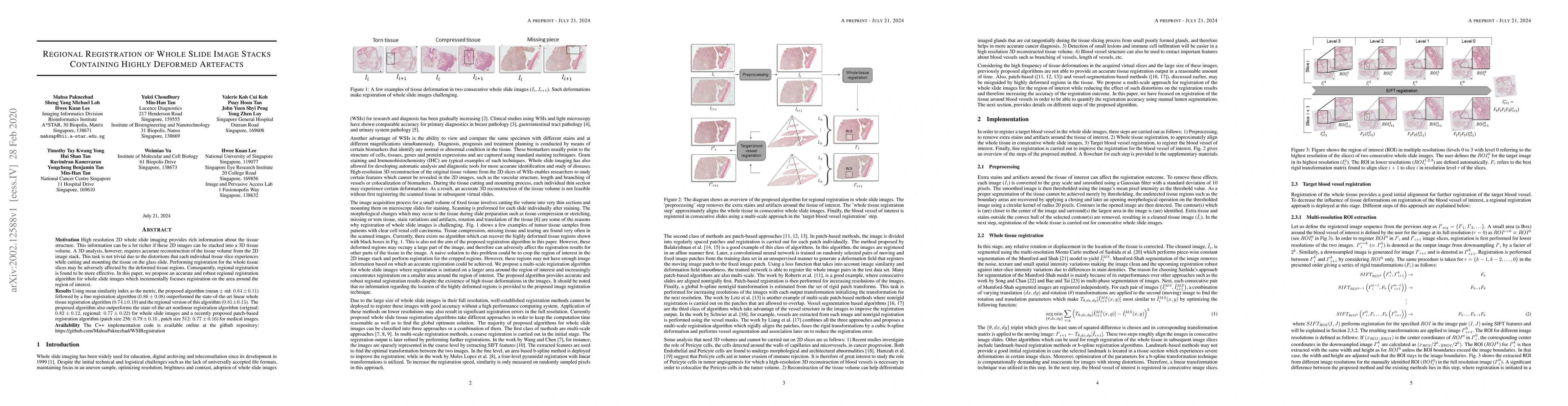 This paper proposes a robust regional registration algorithm for high-resolution 2D whole slide images to create accurate 3D tissue volumes, addressing distortions from tissue deformation. The algorithm incrementally focuses on regions of interest, outperforming state-of-the-art linear and nonlinear registration methods in terms of mean similarity index.