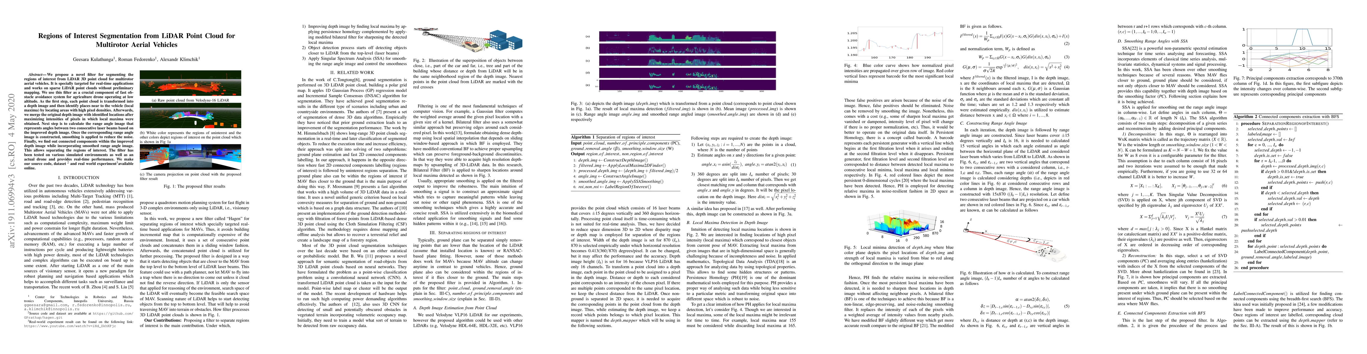 A new filter is proposed for segmenting regions of interest from LiDAR point clouds in real-time, enabling fast obstacle avoidance for multirotor aerial vehicles.