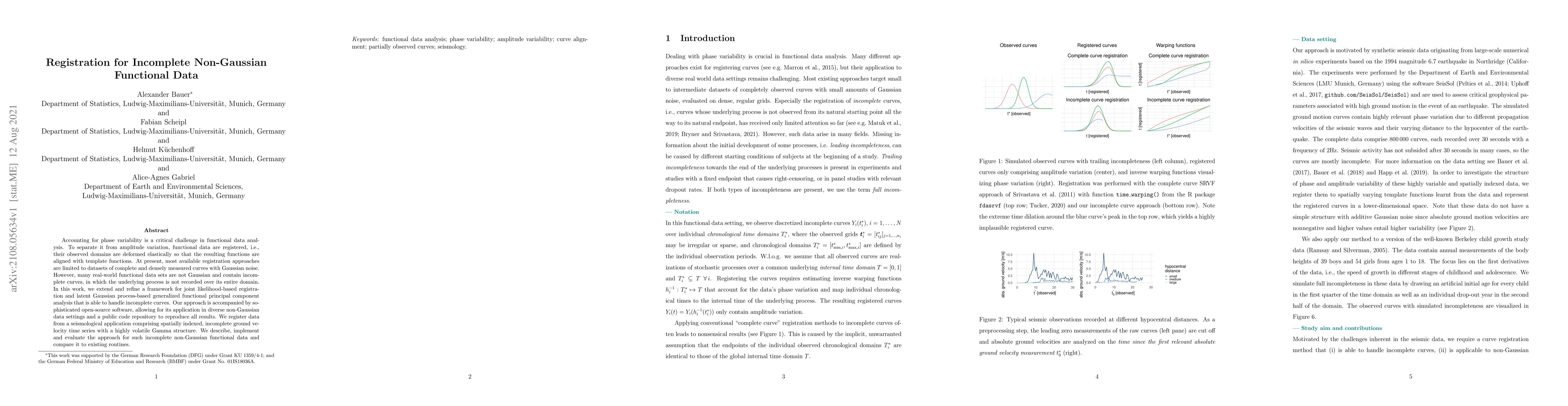 This paper proposes an advanced framework for registering incomplete non-Gaussian functional data by elastically deforming observed domains to align with template functions, addressing the challenge of phase variability. The method is demonstrated through seismological data and is supported by open-source software.