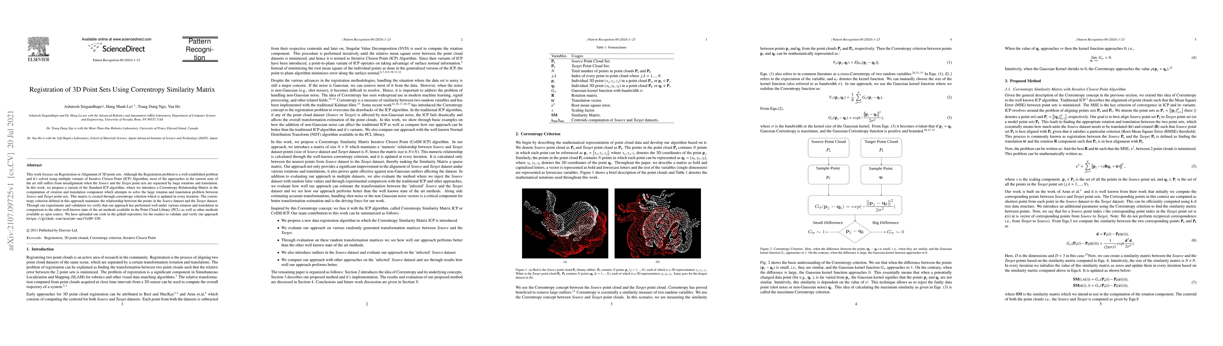 Researchers propose a new approach to registering 3D point sets using Correntropy Similarity Matrix, improving alignment for large rotations and translations, outperforming existing state-of-the-art methods.