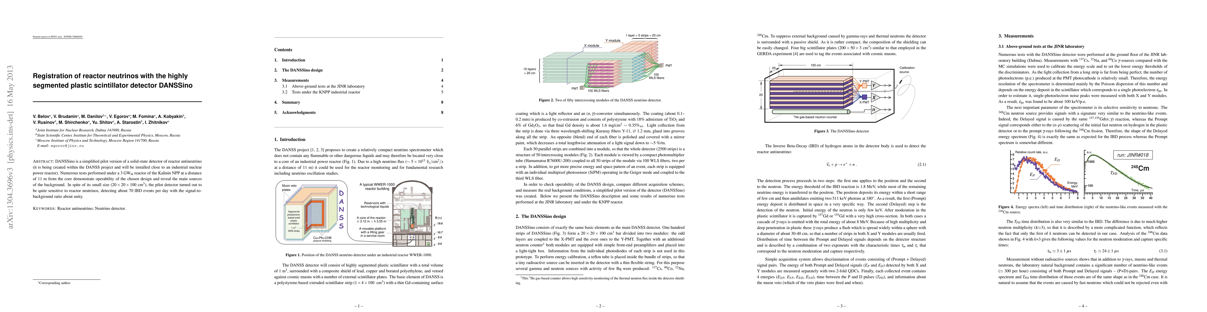 DANSSino is a simplified pilot version of a solid-state detector of reactor antineutrino (it is being created within the DANSS project and will be installed close to an industrial nuclear power reactor). Numerous tests performed under a 3 GW(th) reactor of the Kalinin NPP at a distance of 11 m from the core demonstrate operability of the chosen design and reveal the main sources of the background. In spite of its small size (20x20x100 ccm), the pilot detector turned out to be quite sensitive to reactor neutrinos, detecting about 70 IBD events per day with the signal-to-background ratio about unity.