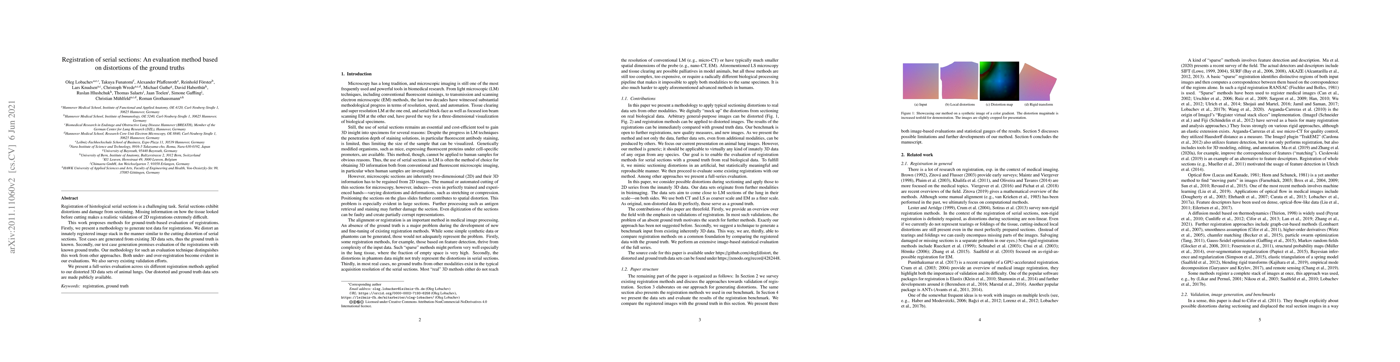 This paper proposes a novel method for evaluating the registration of histological serial sections by generating distorted ground truth data that mimics cutting distortions. The evaluation method allows for the assessment of both under- and over-registration, distinguishing it from existing validation efforts.