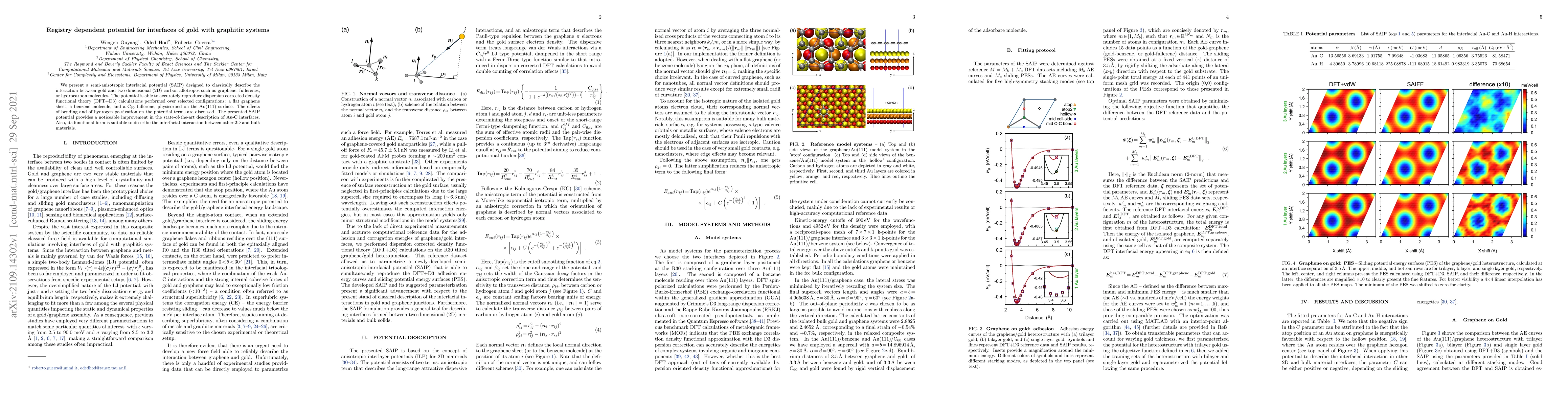 This paper introduces a semi-anisotropic interfacial potential (SAIP) to classically model the interaction between gold and 2D carbon allotropes like graphene and fullerenes on the Au(111) surface. It shows improved accuracy over DFT+D3 calculations and discusses the effects of bending and hydrogen passivation, enhancing the state-of-the-art description of Au-C interfaces.