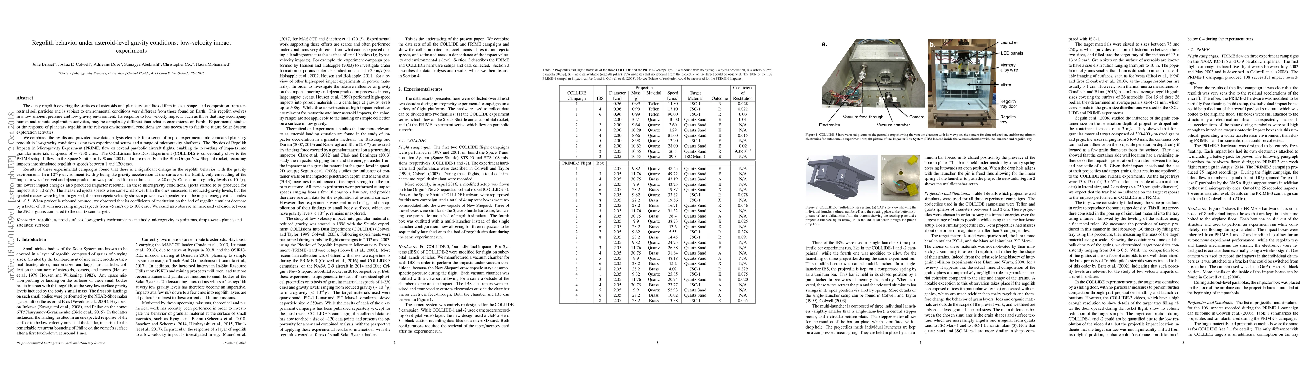This study investigates the behavior of asteroid regolith under low-gravity conditions through impact experiments in the PRIME and COLLIDE setups. Results show significant differences in regolith behavior between Lunar and microgravity levels, with ejecta production and impactor rebound occurring at different impact velocities and conditions.
