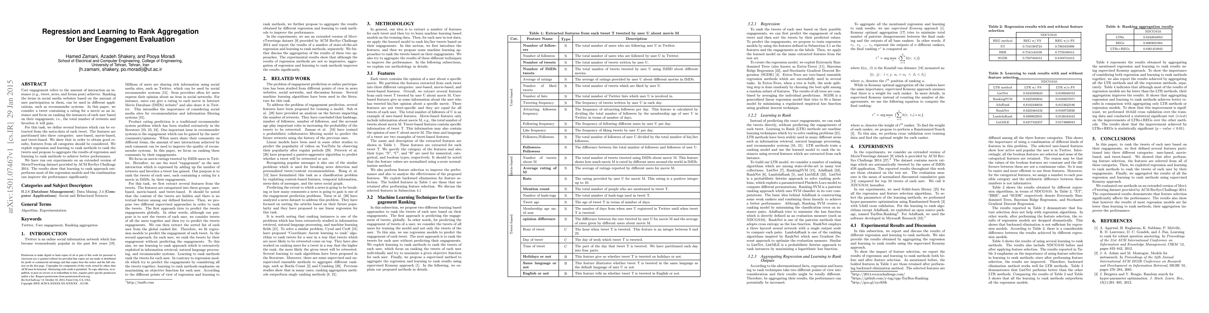 This paper proposes a method to rank tweets based on user engagement using regression and learning to rank techniques, showing that combining these approaches yields better performance than using either alone. Experiments on the MovieTweeting dataset demonstrate that features from user, movie, and tweet categories are essential for effective ranking.