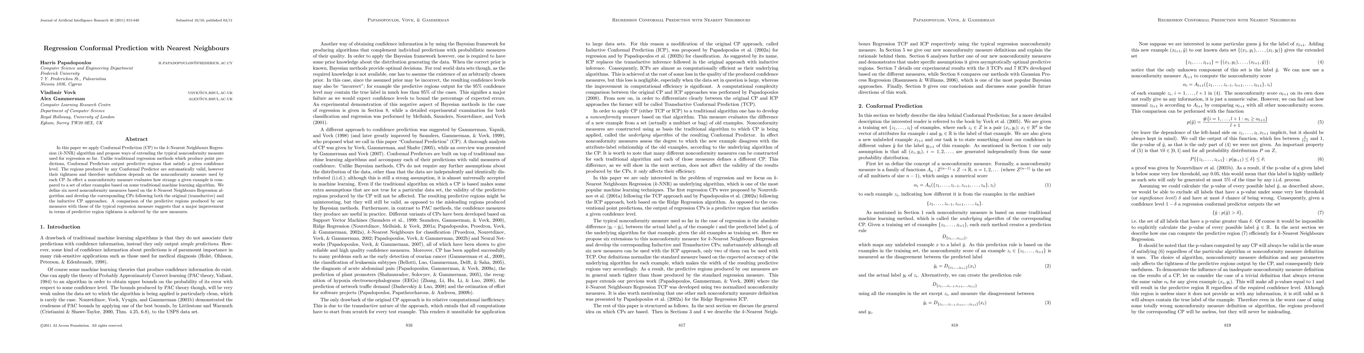 This paper introduces Conformal Prediction to k-Nearest Neighbours Regression (k-NNR) and proposes six novel nonconformity measures to enhance predictive regions' tightness. Unlike traditional regression methods, Conformal Predictors provide valid predictive regions at a given confidence level, and the new measures show significant improvement over typical regression measures.