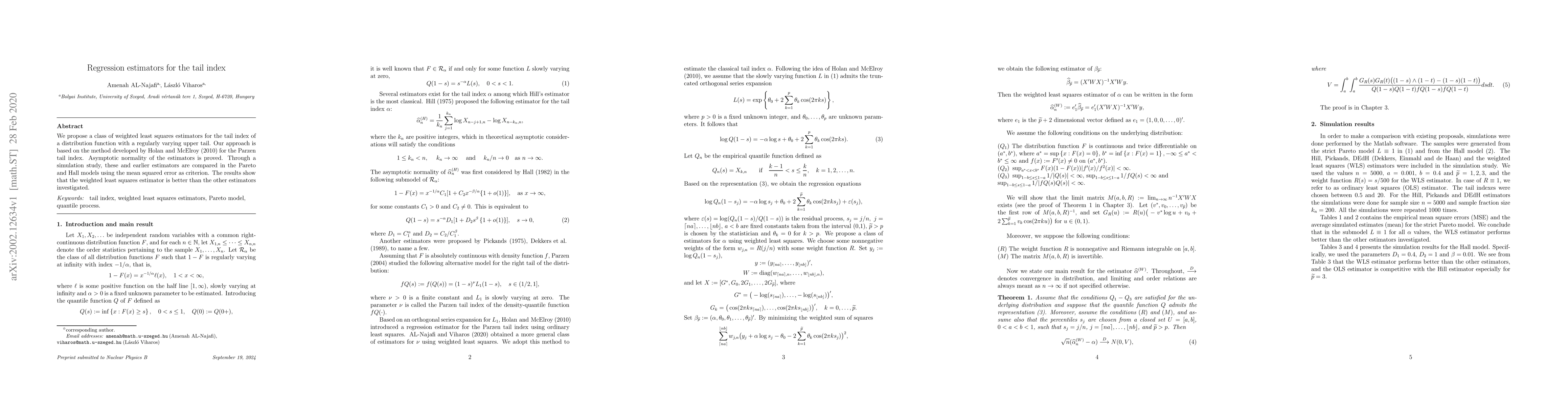 This paper introduces weighted least squares estimators for the tail index of distributions with regularly varying upper tails, proving their asymptotic normality. Simulation studies comparing these new estimators with previous methods show they outperform others in terms of mean squared error in Pareto and Hall models.