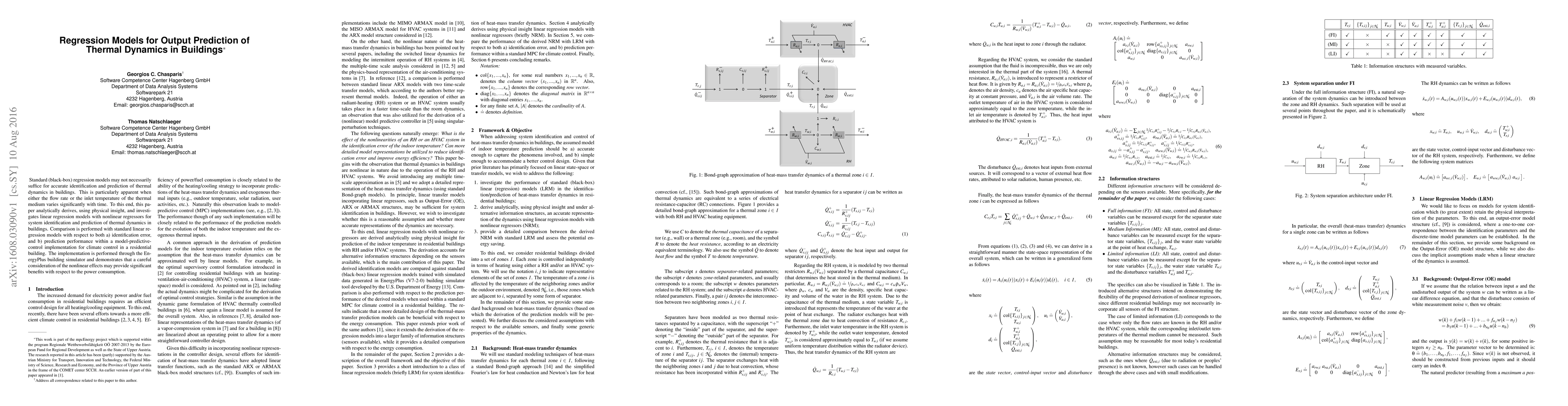 This paper develops linear regression models with nonlinear regressors for predicting thermal dynamics in buildings, showing improved identification and prediction accuracy compared to standard linear models, particularly under variable flow rates and temperatures. The results, validated using EnergyPlus, indicate substantial benefits in power consumption.