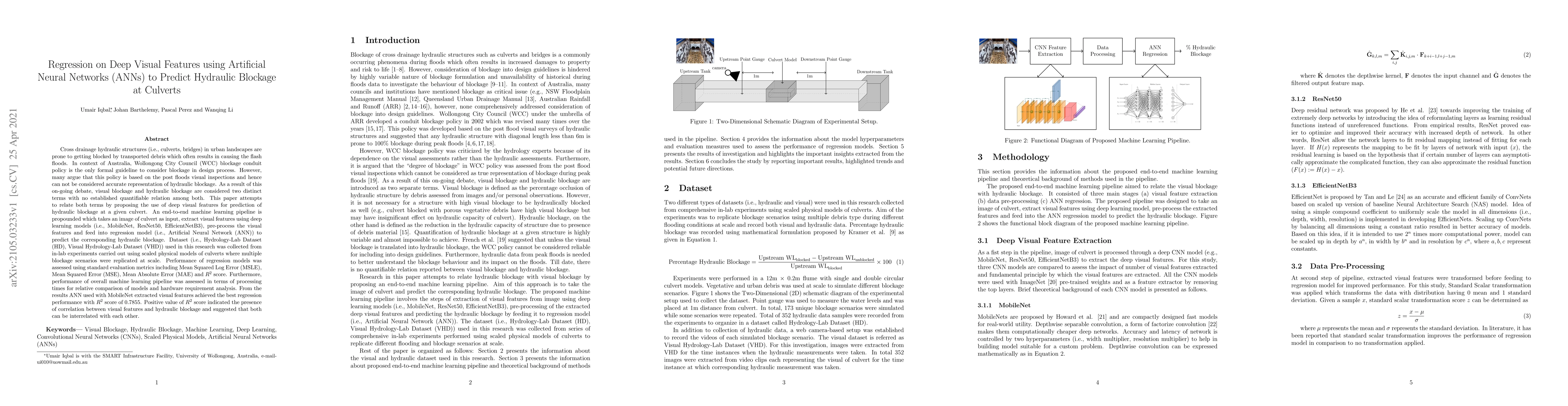 A study uses artificial neural networks to predict hydraulic blockage at culverts in urban areas based on images of the culverts, finding a correlation between visual features and hydraulic blockage with an R^2 score of 0.7855.