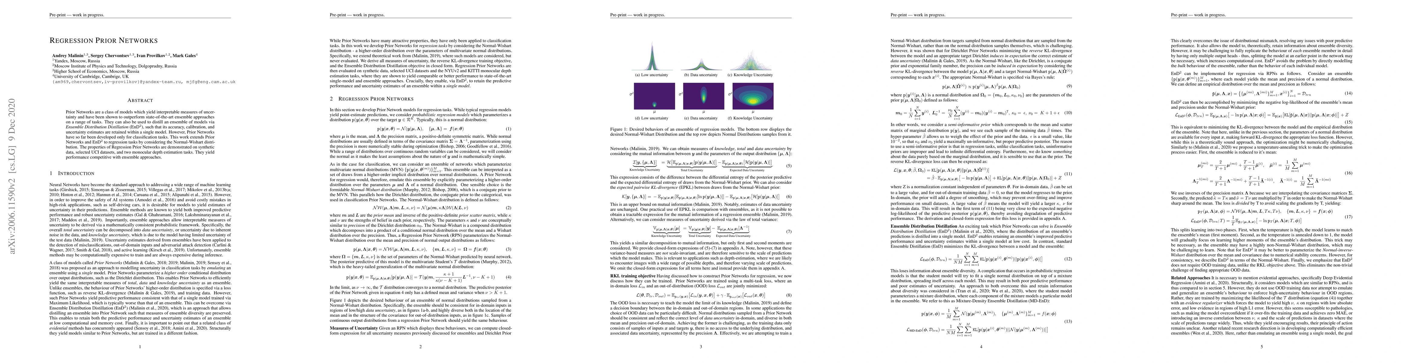 This paper introduces Regression Prior Networks, a new class of models that outperform ensemble approaches in regression tasks, offering interpretable uncertainty measures and distillation techniques.