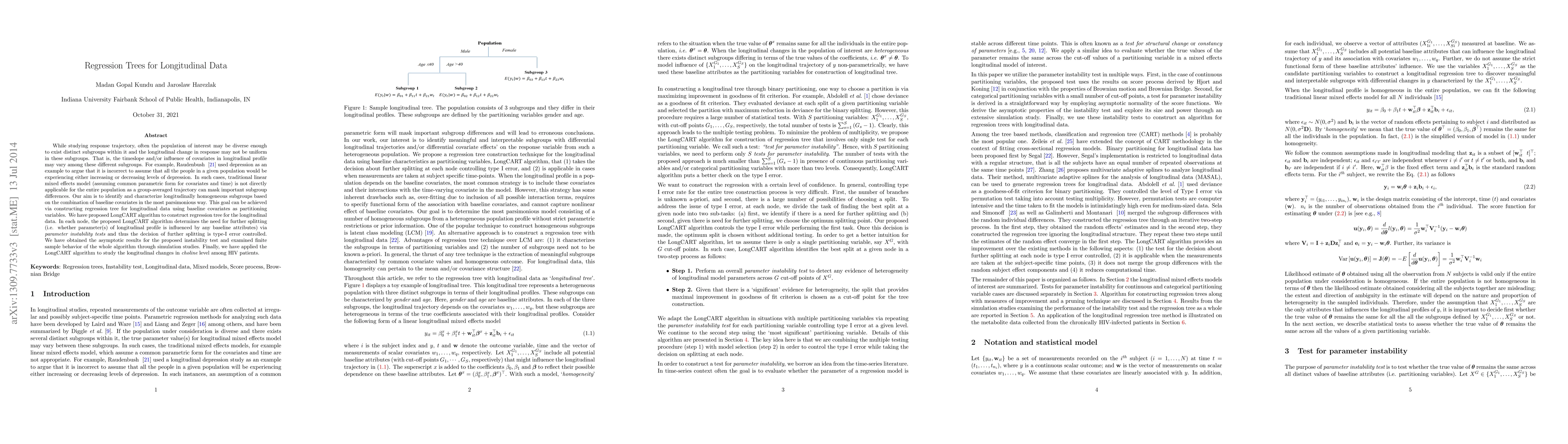 This paper proposes the LongCART algorithm to identify and characterize longitudinally homogeneous subgroups within diverse populations using regression trees based on baseline covariates. The method employs parameter instability tests to control type-I error and is validated through simulation studies, ultimately applied to analyze choline level changes in HIV patients.