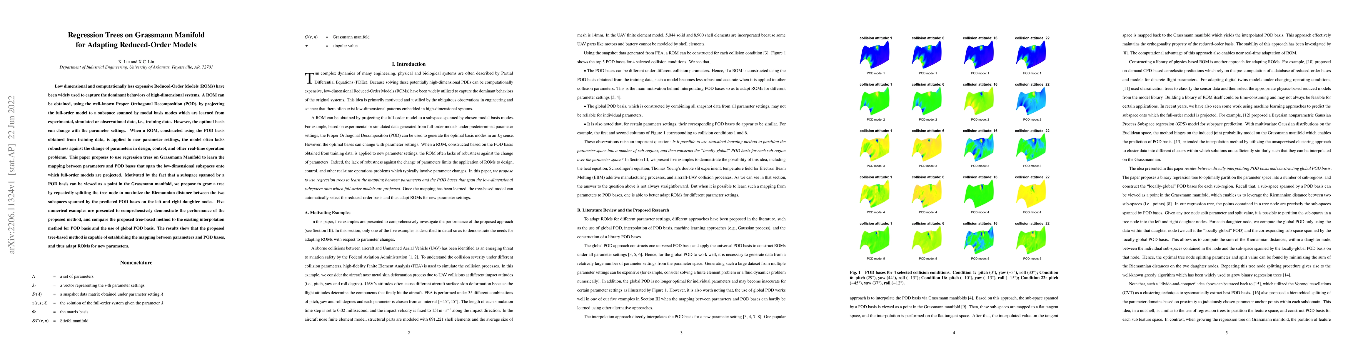 This paper proposes using regression trees on the Grassmann Manifold to adapt Reduced-Order Models (ROMs) by learning the mapping between parameter settings and Proper Orthogonal Decomposition (POD) bases. The method demonstrates improved robustness for ROMs when applied to new parameter settings compared to existing interpolation methods.