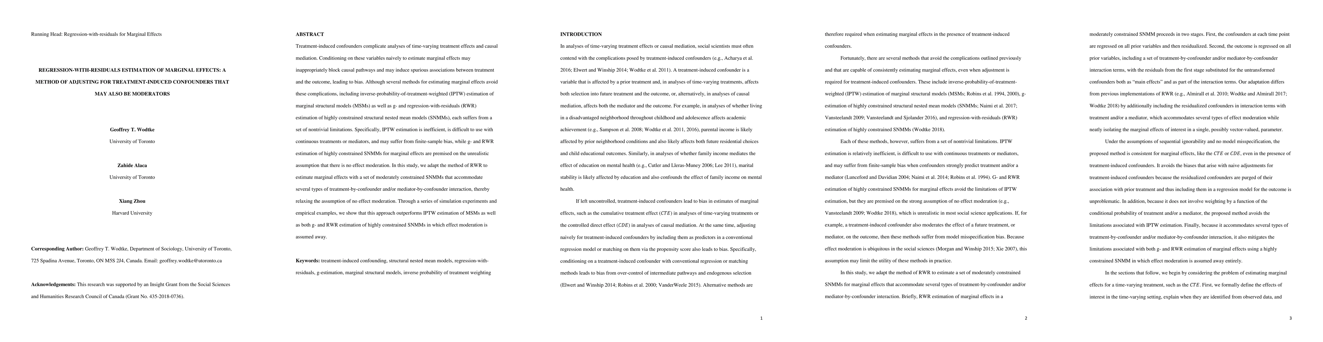 A new method for estimating marginal effects that adjusts for treatment-induced confounders and accommodates potential moderators outperforms existing methods in reducing bias and improving accuracy, especially when effect moderation is present.