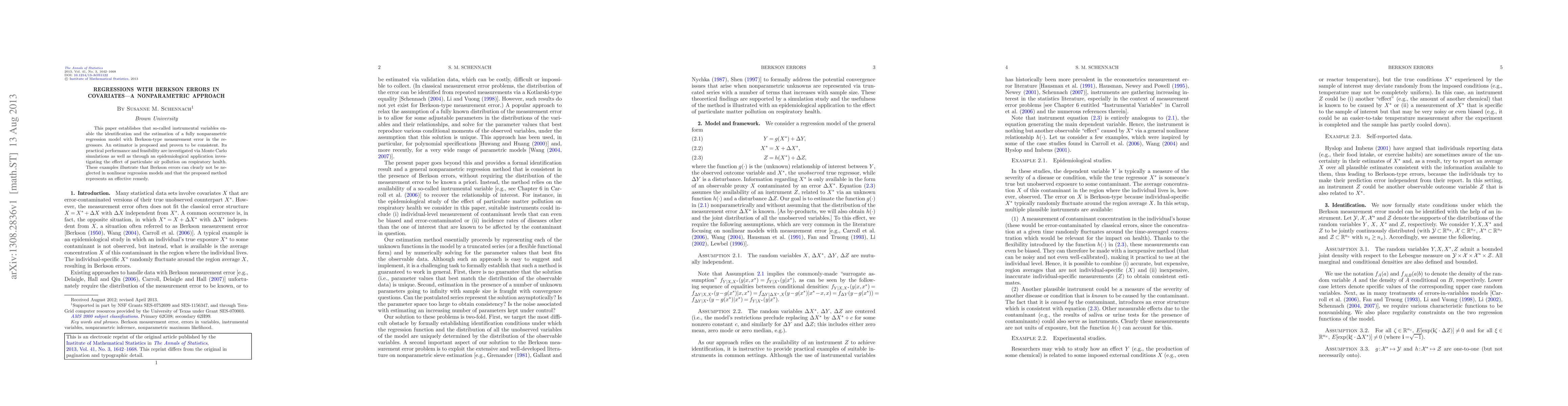 This paper proposes a nonparametric regression method using instrumental variables to identify and estimate models with Berkson measurement errors in covariates, demonstrating its consistency and practical effectiveness through simulations and an epidemiological study on air pollution's impact on respiratory health.
