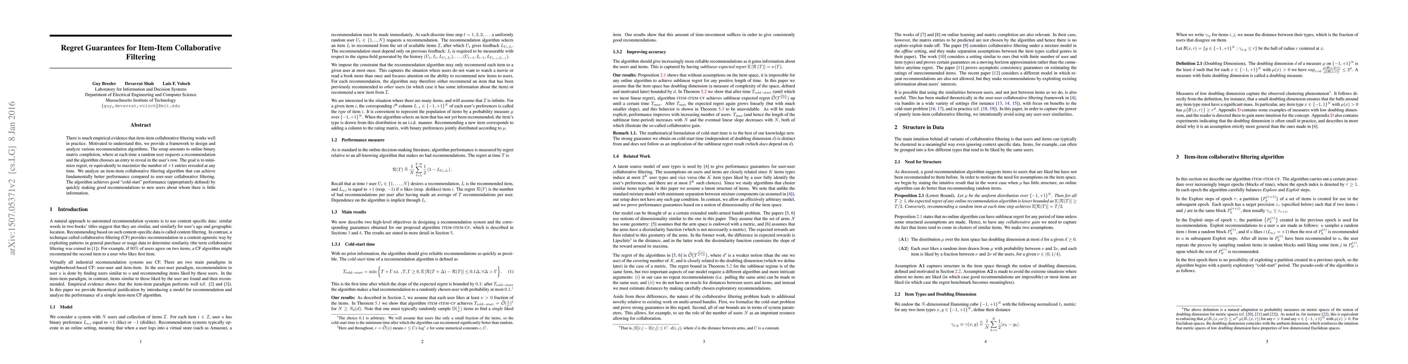 This paper presents a framework for analyzing item-item collaborative filtering algorithms through the lens of online binary matrix completion, aiming to minimize regret and maximize discovered +1 entries. It introduces an algorithm that outperforms user-user methods and demonstrates strong "cold-start" performance for new users.
