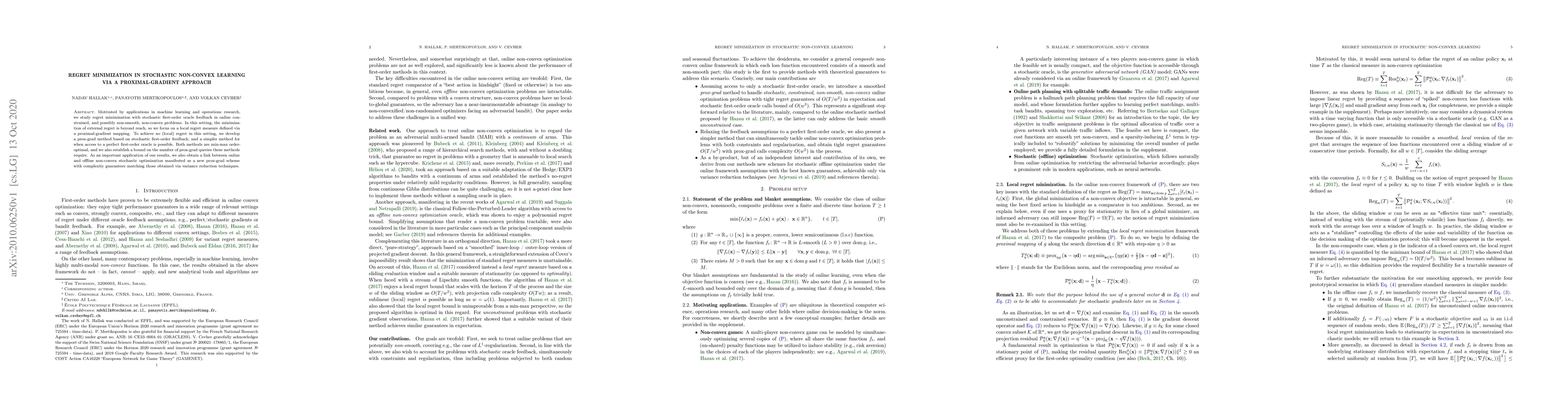 This paper develops a proximal-gradient approach for minimizing local regret in stochastic non-convex learning problems, offering optimal min-max order methods with complexity bounds. It also establishes a connection between online and offline non-convex optimization through a new prox-grad scheme.
