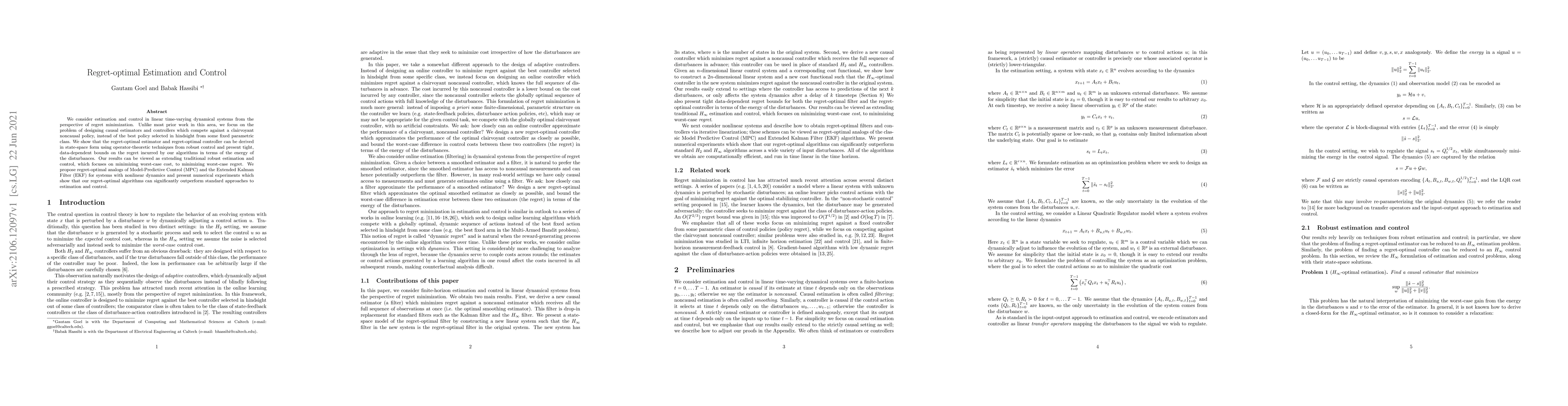 We consider estimation and control in linear time-varying dynamical systems from the perspective of regret minimization. Unlike most prior work in this area, we focus on the problem of designing causal estimators and controllers which compete against a clairvoyant noncausal policy, instead of the best policy selected in hindsight from some fixed parametric class. We show that the regret-optimal estimator and regret-optimal controller can be derived in state-space form using operator-theoretic techniques from robust control and present tight,data-dependent bounds on the regret incurred by our algorithms in terms of the energy of the disturbances. Our results can be viewed as extending traditional robust estimation and control, which focuses on minimizing worst-case cost, to minimizing worst-case regret. We propose regret-optimal analogs of Model-Predictive Control (MPC) and the Extended KalmanFilter (EKF) for systems with nonlinear dynamics and present numerical experiments which show that our regret-optimal algorithms can significantly outperform standard approaches to estimation and control.