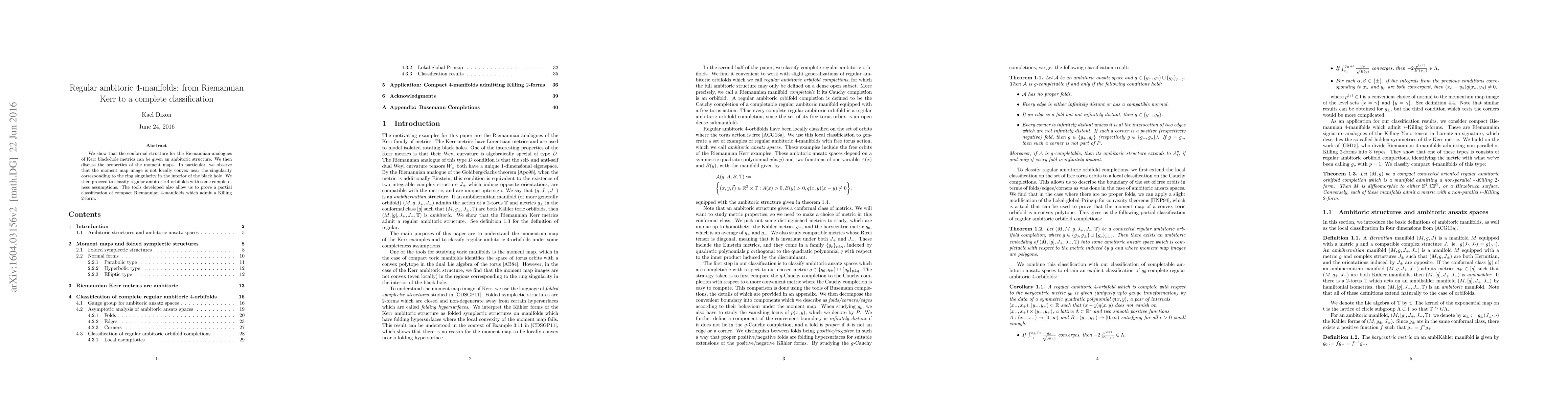 This paper classifies regular ambitoric $4$-orbifolds and provides a partial classification of compact Riemannian $4$-manifolds with a Killing $2$-form, using tools that reveal the non-locally convex nature of moment maps near singularities in the Riemannian analogues of Kerr black-hole metrics.