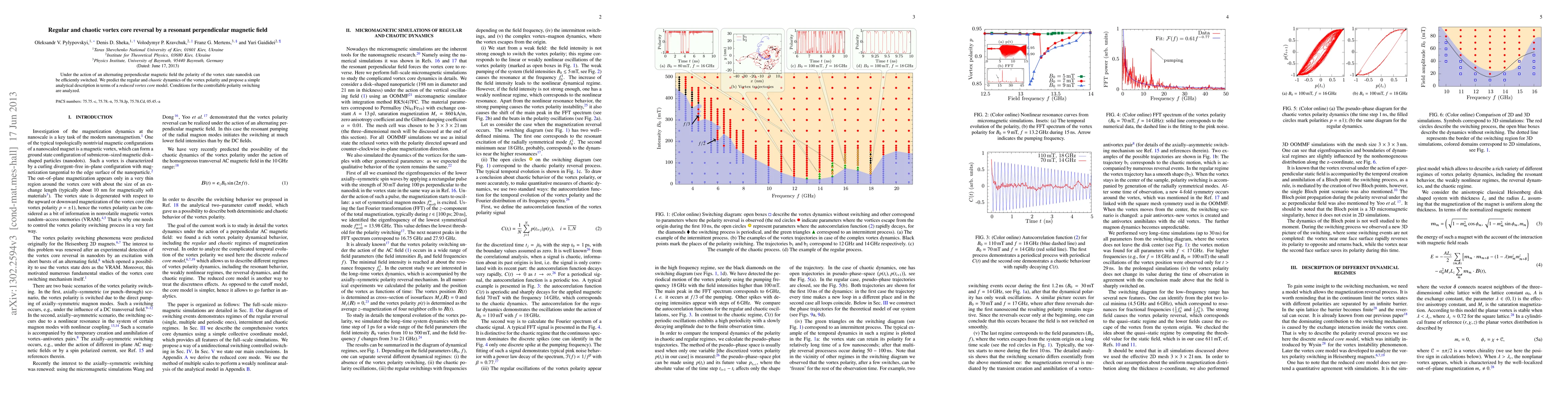 This paper investigates the switching of vortex polarity in nanodisks under an alternating perpendicular magnetic field, predicting both regular and chaotic dynamics. It proposes an analytical model for the vortex core and analyzes conditions for controllable polarity reversal.