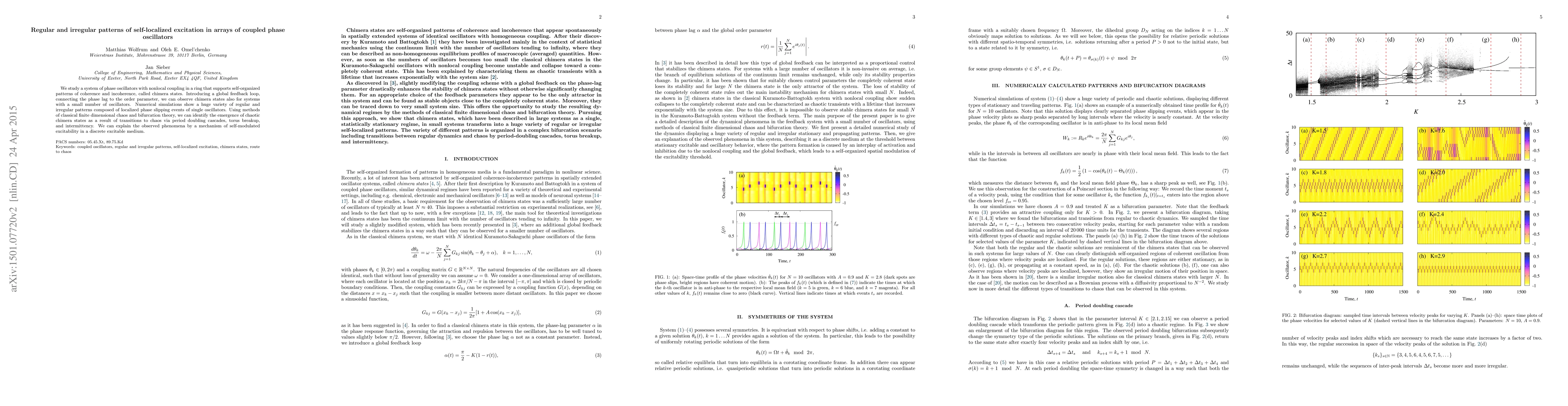 This paper investigates phase oscillators with nonlocal coupling that exhibit chimera states, characterized by regions of coherence and incoherence. By introducing global feedback, it reveals a wide range of regular and irregular patterns of localized phase slipping, explained through self-modulated excitability and identified via chaos and bifurcation theory.