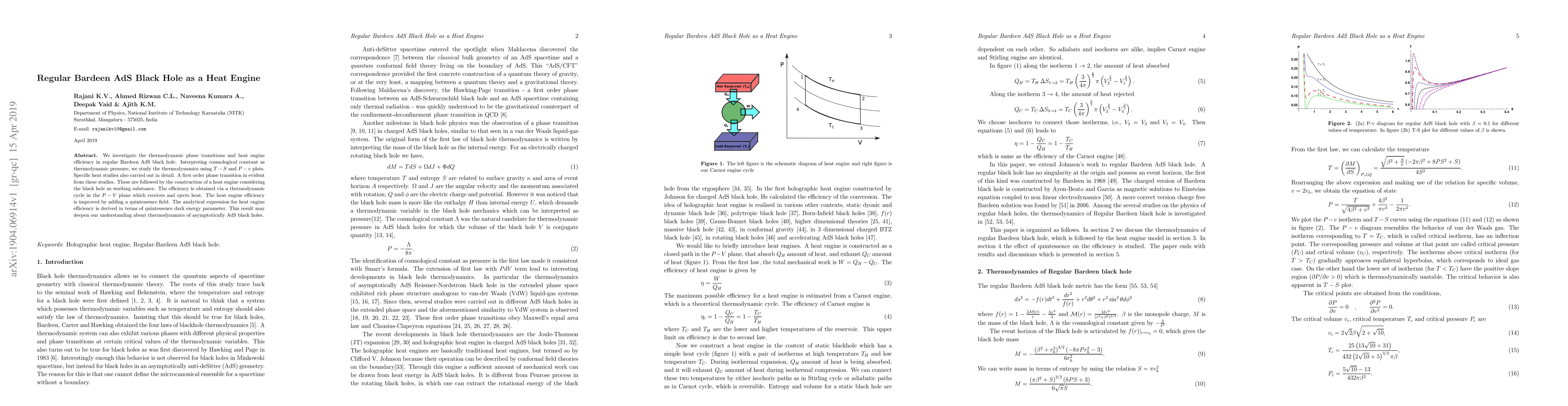This paper explores the thermodynamic phase transitions and efficiency of a heat engine in a regular Bardeen AdS black hole, interpreting the cosmological constant as thermodynamic pressure. The study reveals a first-order phase transition and derives an analytical expression for heat engine efficiency, improved by incorporating a quintessence field, thus enhancing our understanding of thermodynamics in AdS black holes.